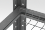 Стойки изготовлены из стали толщиной - 1,2 мм. Исполнение стоек - угловые катанные. Шаг перфорации стоек 50 мм. Рамки под сетку с двойными гибами по периметру изготовлены из стали - 0,8 мм.