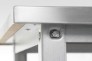 Каркас стола разборный, собирается при помощи болтов. Возможна фиксация деталей каркаса при сборке. Изготовлен из оцинкованной стали толщиной 1,5 мм. Ножки каркаса выполнены из гнутого углового профиля с подгибами. Оснащены усиленными стальными подпятниками, регулируемыми полиамидными опорами ножек.