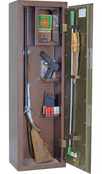 Оружейный сейф ОШ-2С - это односекционный сейф, который предназначен для хранения оружия и боеприпасов к нему. Сертифицирован ОШ 2С на устойчивость к взлому по ГОСТ Р 51113-97 пункт 4.1 таблица 1а и полностью законно соответствует классу взломостойкости Н0, ниже нулевого, что как раз и позволяет хранить в нем как оружие, так и боеприпасы на абсолютно законных основаниях. Толщина металла корпуса оружейного сейфа ОШ 2С составляет 2 миллиметра, собственно и толщина металла двери - также 2 миллиметра. Вместимость сейфа максимум - 2 ствола, максимальная высота ствола при этом не должна превышать 1130 миллиметров. Сейф ОШ-2С комплектуется небольшим патронным отделением, съемными полками, которые при необходимости можно убрать и полноценно хранить второе длинноствольное оружие, а также металлическими держателями с резиновыми роликами для аккуратности размещения стволов. Двери сейфа закрываются ключевыми замками ЗАО "Про-Сам", производства завода в городе Рязань или на аналогичные замки другого производителя того же класса. На задней стенке корпуса ОШ-2С расположены отверстия для крепления данного оружейного сейфа с помощью анкерного болта к стене. Цвет корпуса - медно-бронзовый, неброский. Купить оружейный сейф ОШ-2С в наличии самовывозом из ближайшей точки самовывоза или оформить доставку по любому адресу всегда возможно в интернет-магазине компании "Мир Сейфов", мы предлагаем низкие цены, быструю доставку и хорошие скидки нашим клиентам.