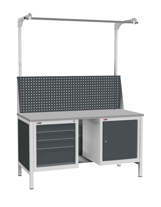 Подвесная тумба ВЛ-К-014 предназначена для установки на верстак серии ВЛ-К. Комплектуется 4 выдвижными ящиками. Полезный размер ящиков (ВхШхГ): 1-80х459х459 мм, 2-180х459х459 мм. Закрывается центральным ключевым замком (50 000 циклов). Цвет: серый Ral 7038, лицевая панель антрацит Ral 7016. Тип покрытия: эпоксидная порошковая краска