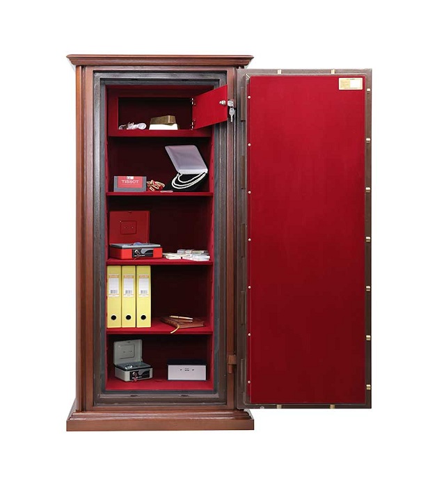 Valberg Гарант Евро 165 Т Д (дуб) предназначен для сохранности документов и ценностей при пожаре и взломе. Рекомендованная сумма хранения денег до 6,5 млн. руб. для физических лиц и до 2 млн. руб. для юридических лиц. Устойчивость к взлому по ГОСТ Р 50862-2017: класс 2 (ГОСТ Р). Огнестойкость: ГОСТ Р 57384-2017: класс 60Б (ГОСТ Р). При заливке двери и корпуса сейфа используется запатентованная система армирования огнестойкого бетона. Толщина защитного слоя двери - 33 мм, общая толщина двери - 105 мм. Толщина боковых стен -77 мм, задней стенки - 51 мм. В сейф установлена: 3х сторонняя ригельная система запирания; защита замка и ригелей от высверливания и выбивания; система блокировки ригельного механизма при выбивании замка; тепловой замок, усиленный огнестойким уплотнителем. Сейф Valberg Гарант Евро 165 Т Д (дуб) закрывается ключевым замком KABA MAUER (под заказ возможно установить - электронный кодовый замок PS610/E036; биометрический кодовый замка PS610FD/E36FD). Предусмотрена возможность анкерного крепления к полу (анкерный болт в комплекте). Внешняя отделка выполнена из натурального дерева, внутренняя отделка из бархата. Покрытие ручек: матовый хром или золото. Цвет: корпус - №11-А, внутренняя отделка - С-1059. Возможны другие варианты окрашивания.